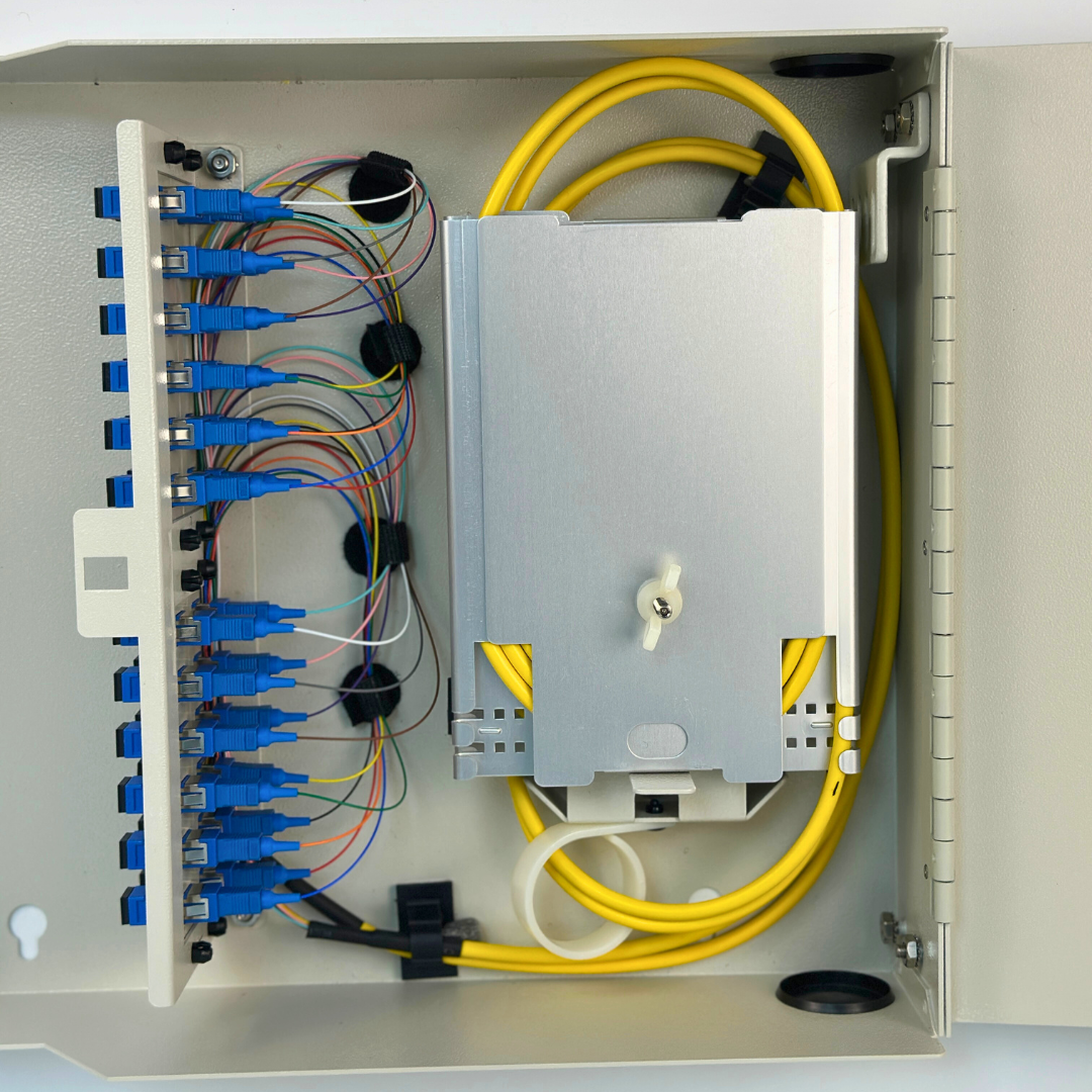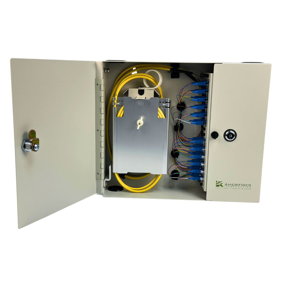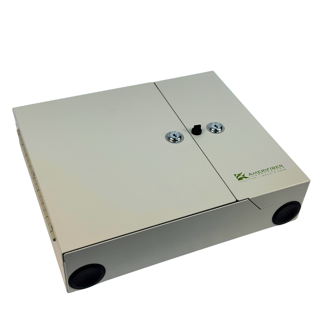 The AFWMD-4X2 provides protection for fiber optic terminations and splices. The enclosure is equipped with 4 ports for cable entry. The enclosure accommodates (4) LGX style adapter plates and can be configured to house up to (48) SC footprint adapters and 48 splices. The AFWMD-4X2 is available unloaded, with pigtails and adapters, or can be equipped with a pre-terminated stub cable per the customers specifications.
